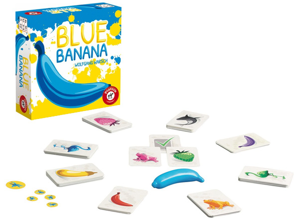Grapsch-Spiele, bei der maximale Konzentration und Aufmerksamkeit verlangt wird, gibt es in diesem Jahrgang recht viele. Blue Banana bietet da keine wirklich neue Überraschung, denn sobald man das mit dem „Negativ“ verstanden hat, verbraucht sich der Reiz schnell. Auch die trashige Plastikbanane (blau), die gegriffen werden muss, sobald keine korrekte Karte mehr auf den Stapeln liegt, ändert daran nichts.