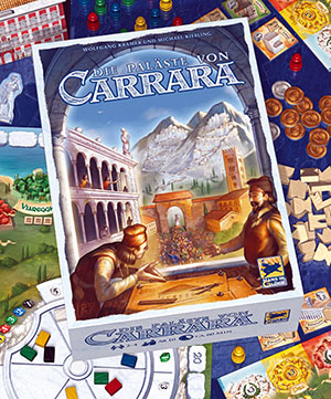Für Geld kaufen wir Bausteine. Und diese wechseln wir in Gebäude, die uns bei einer Wertung entweder Geld oder Siegpunkte gewähren. So einfach ist die Grundidee der Paläste von Carrara. Doch Altmeister Wolfgang Kramer und sein kongenialer Partner Michael Kiesling würde nicht ein derart guter Ruf vorauseilen, wenn sie aus diesem Substrat nicht ein bemerkenswert gutes Spiel entwickeln könnten.