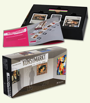 Das Spiel erinnert ein wenig an Quartett mit Kunstwerken – und knüpft somit an eine vertraute Spielidee an. Das ist wahrlich kein falscher Ansatz: Es gibt genügend Erwachsene, die behutsam ans Spielen herangeführt werden müssen. Und da sind Spielkarten mit einem Gemälde, auf dem der Bekanntheitsgrad, das Jahr, das Herkunftsland, die Kategorie und die Größe notiert sind, ein attraktives und Angebot. Der Prestel-Kunstverlag hat bei der Gestaltung seine Kompetenz ausspielen können. Selbst die Schachtel des Spiels ist gestalterisch etwas Besonderes, mit aufwendiger moderner Grafik taugt Kunstmarkt als ansprechendes Geschenk.