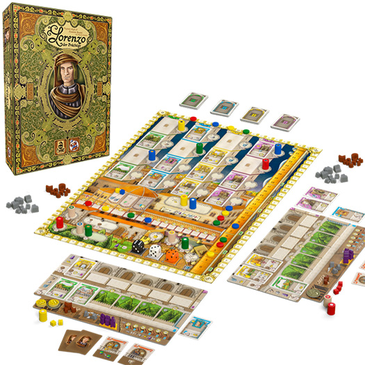 Lorenzo der Prächtige ist Harald Bilz gewidmet, der den Heidelberger Spieleverlag aufgebaut hat und ein bedeutende Persönlichkeit in der deutschsprachigen Spieleszene war. Im Alter von gerade mal 57 Jahren war er verstorben. Die Heidelberger waren in seiner Zeit zu einem Verlag geworden, der bei der „Lokalisation“ von Spielen für den deutschen Markt eine herausragende Rolle spielte. Denn das Herausgeben von Spielen oft sehr kleiner ausländischer Verlage ist weit mehr als die bloße Übersetzung der Regel. Auch Lorenzo der Prächtige, entstanden bei Cranio Creations in Italien, gehört zu den „lokalisierten“ Spieletiteln.