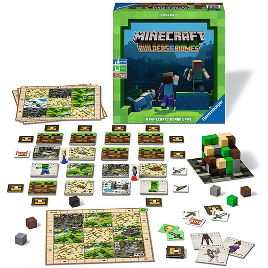 Minecraft bietet ein beindruckend ausgewogenes Spektrum an Anforderungen. Genau so etwas habe ich schon länger vermisst: Ein Brettspiel, das ein wirkliches Brettspiel ist, mit einfachen Regeln, das aus der Neuheitenmasse qualitativ herausragt. Allerdings hat es kein wirkliches Spielbrett – aber es hätte eines verdient. Man muss es sich hinzudenken. Die Karten werden einfach so auf den Tisch gelegt – auf Abstand – und dazwischen bewegen sich die Figuren. Das ist funktional völlig ausreichend. Ein richtiges Brett wäre hingegen mehr etwas fürs Auge.