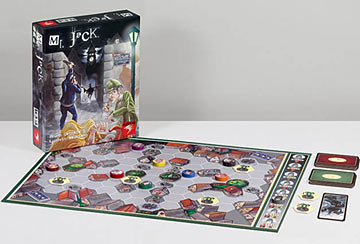 Acht Spielsteine befinden sich auf dem Spielbrett, dessen Sechseckraster einen Londoner Stadtteil darstellt. Jeder Spielstein steht für eine Figur, und hinter einer verbirgt sich der unerkannte Mr. Jack.