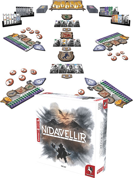 Der Zufall der Kartenauslage, der Bluff beim Ersteigern und die taktisch-strategischen Überlegungen, wie ich an viele Punkte komme, sorgen bei Nidavellir zu einem runden Spielablauf. Dieser gute Gesamteindruck wird ein wenig von der Schlussabrechnung getrübt. Es gibt zwar selbst in der Schlussrunde keine große Downtime, denn die mathematisch bedingten Entscheidungen bleiben überschaubar. Dass aber am Ende Siegpunktsummen oberhalb von 300 möglich sind, passt nicht wirklich zu diesem im Grunde unkomplizierten Kartenspiel.
