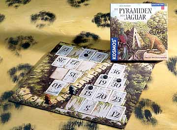 Dieser Spiele für Zwei-Titel von Kosmos ist ein thematisch eingekleidetes Spiel, das seinen abstrakten Kern nicht verheimlichen kann. Ursprünglich erschienen Die Pyramiden des Jaguar unter dem Namen Pacal bei Klee. Da sich die zu Kosmos gehörende Marke Klee jetzt auf die Herausgabe von Kinderspielen beschränkt, ergab sich die Möglichkeit einer Neuauflage dieses Titels.