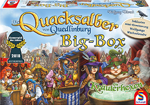 Das Beste an dem großen Quacksalber-Paket, das zunächst exklusiv bei Aldi (Nord und Süd) in den Handel kommt, ist das Material und die Regelmodifikation für eine zusätzliche fünfte Spielerin. Da man hier weitgehend gleichzeitig in seinem Beutel grabbelt, ist das absolut lohnend. Während bei anderen Spielen mit zunehmender Spielerzahl die Wartezeiten verlängert werden, besteht in Quedlinburg diese Gefahr kaum.