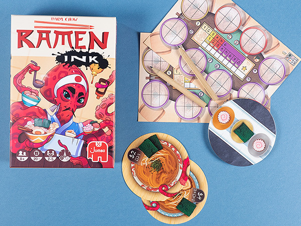 Ramen Ink, das über sechs Runden dauert, leidet bedauerlicherweise unter einem Startspielerproblem. Wer vorne sitzt, darf sich aus allen Karten die beste aussuchen. Wer in der Vier- oder Fünf-Personen-Partie nur einmal Startspieler ist, ist deshalb benachteiligt. Der eigentliche Spielablauf kann überzeugen, denn er bietet das richtige Verhältnis aus Glück, Nachdenken über den eigenen Zettel und interaktivem Nehmen der Karten – das vor dem Hintergrund einer interessant umgesetzten Thematik. Allerdings sollte keiner am Tisch sitzen, der ewig alle denkbaren Kombinationen auf dem eigenen und vielleicht noch auf den anderen Wertungsbögen durchrechnet.